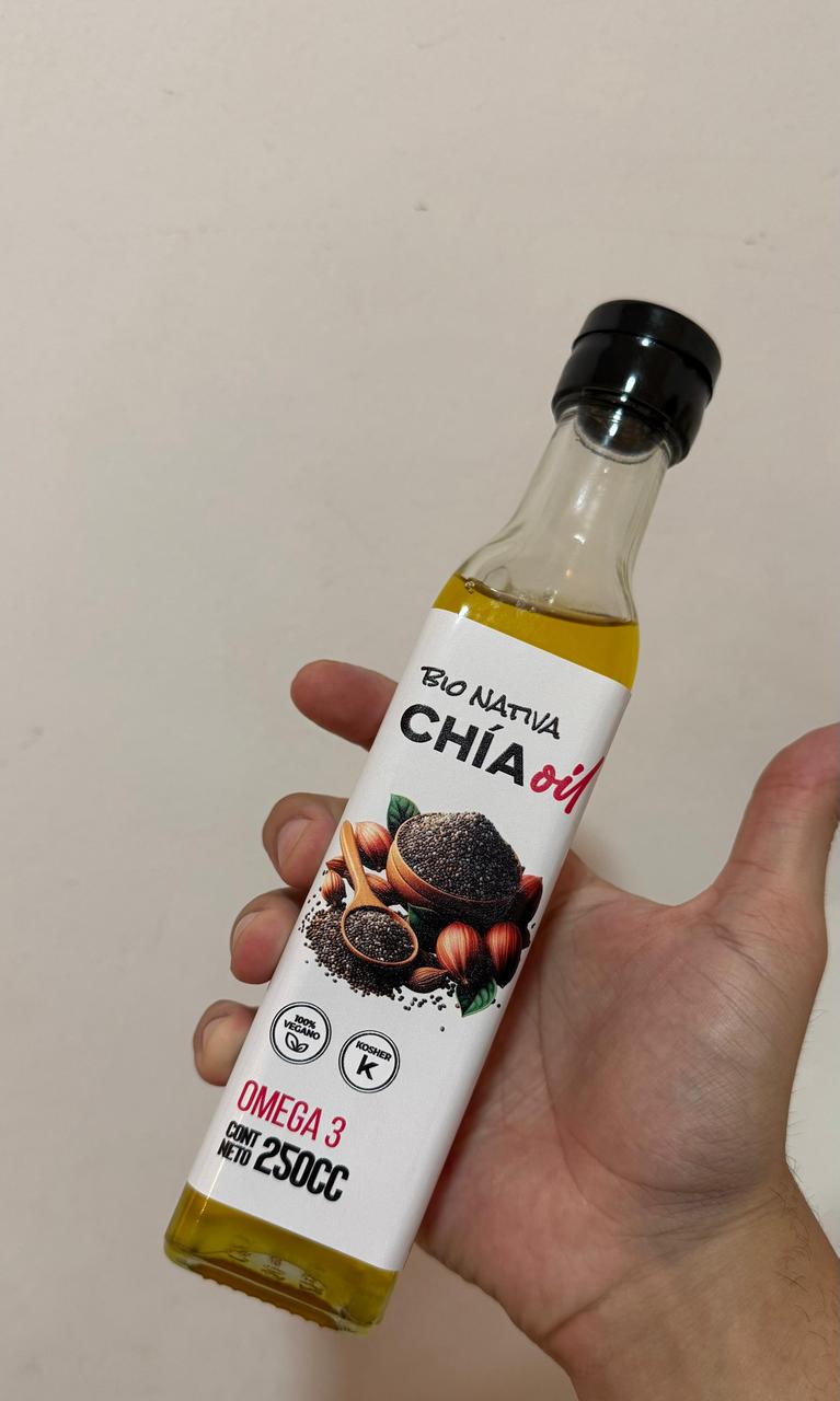 Aceite de chía comestible, rico en ácidos grasos omega y de sabor suave, ideal para aderezar ensaladas, bowls y preparaciones frías. Su textura ligera y su perfil nutritivo lo convierten en una opción saludable y versátil para sumar a tu cocina diaria.